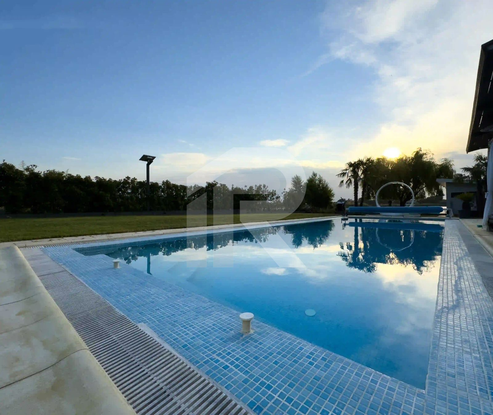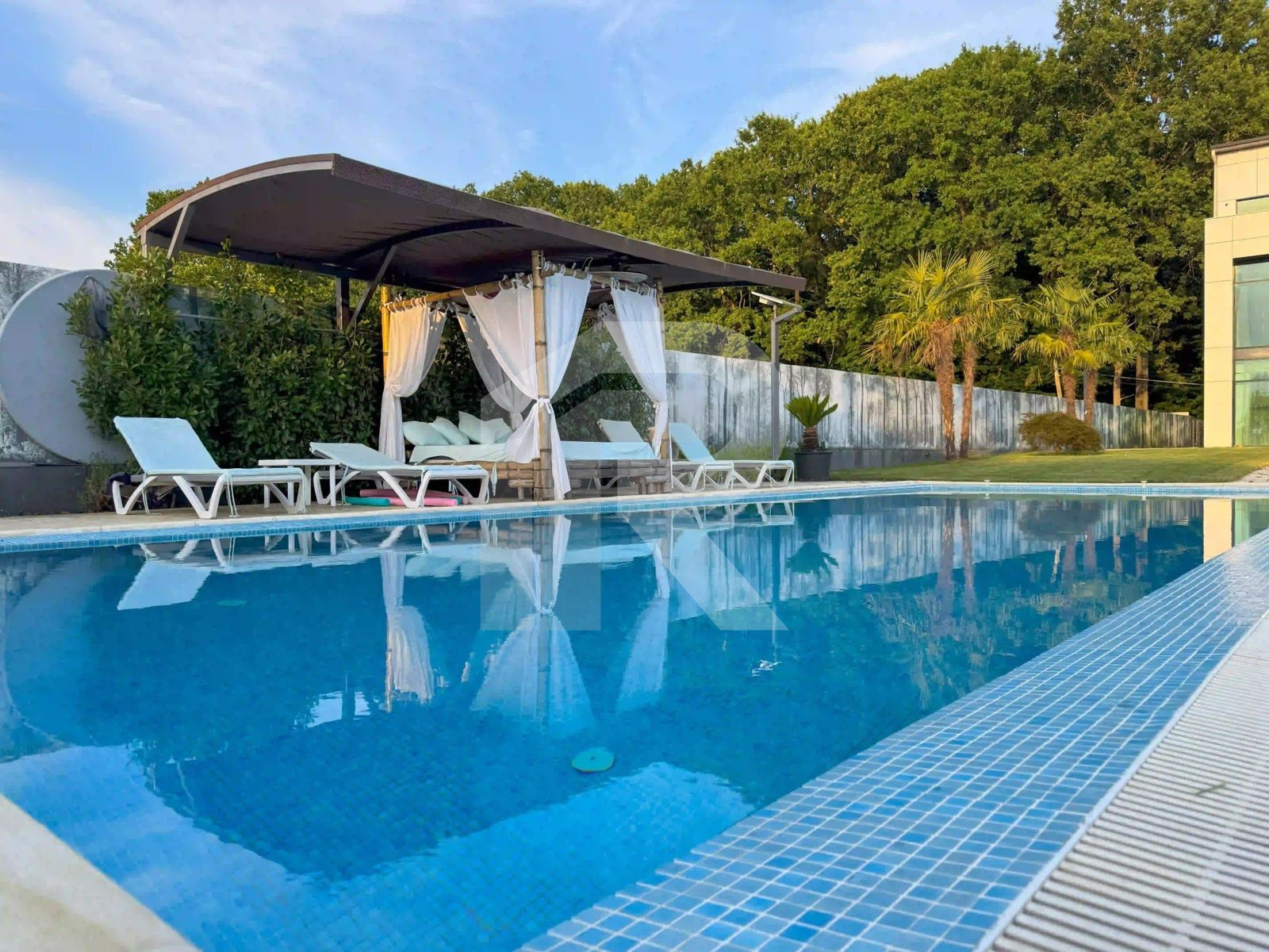 •⁠  ⁠Piscină elegantă înconjurată de palmieri